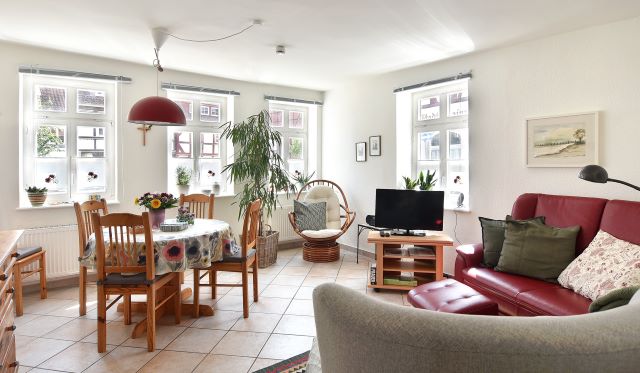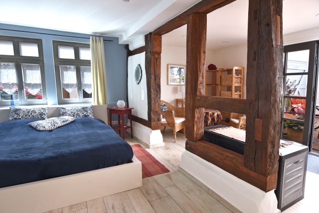 Die Fußgängerzone ist nur ein Katzensprung entfernt. Frische Brötchen gibt es direkt nebenan beim Bäcker und die leckeren Eichsfelder Wurstspezialitäten zwei Häuser weiter in der Schlachterei.