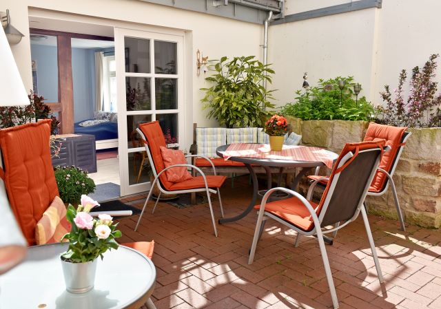 Über den mediterran angelegten Innenhof ist es möglich barrierefrei in die Wohnung zu gelangen.